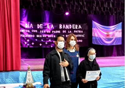 Los niños presentaron su bandera, la cual fue bendecida por el Padre Ernesto durante el acto, la cual será para cada niño y su familia, motivo de renovación constante de tan hermoso momento vivido en la promesa de lealtad realizada, como estudiantes de la escuela primaria.