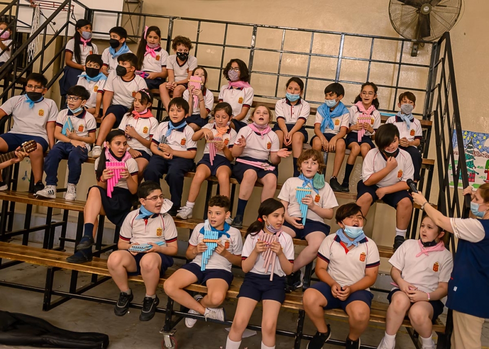 Finalmente, los alumnos de 4° grado junto a sus docentes, Aldana Obeide, Marta Palacios y Guadalupe, nos brindaron un emotivo mensaje de esperanza y amor ante la próxima Navidad; y bajo la dirección del Profe Franco, nos brindaron un hermoso villancico con los instrumentos que ellos mismos confeccionaron. Felicitaciones!!!