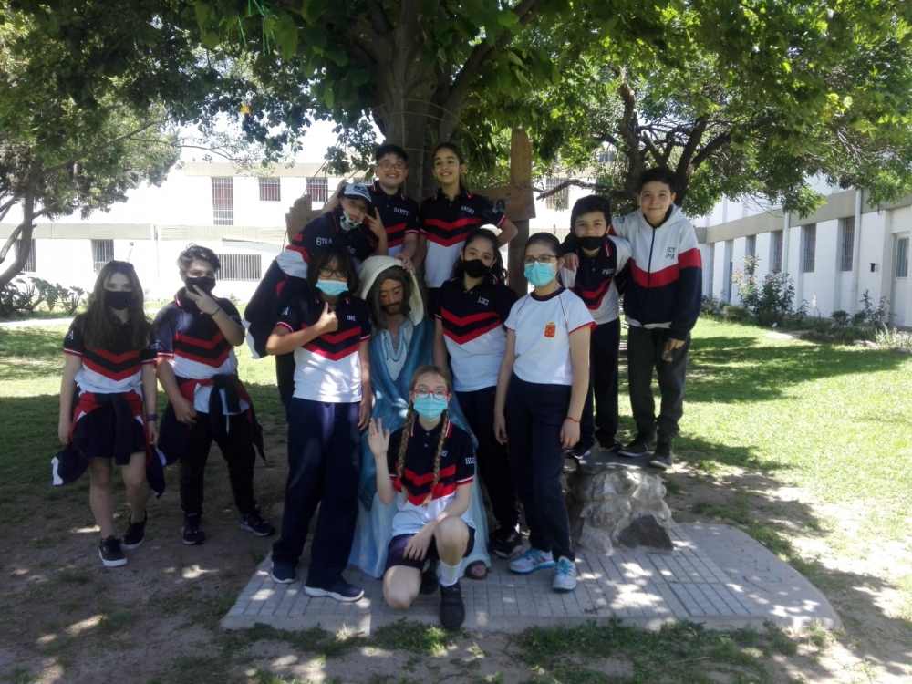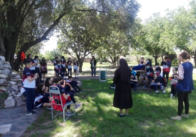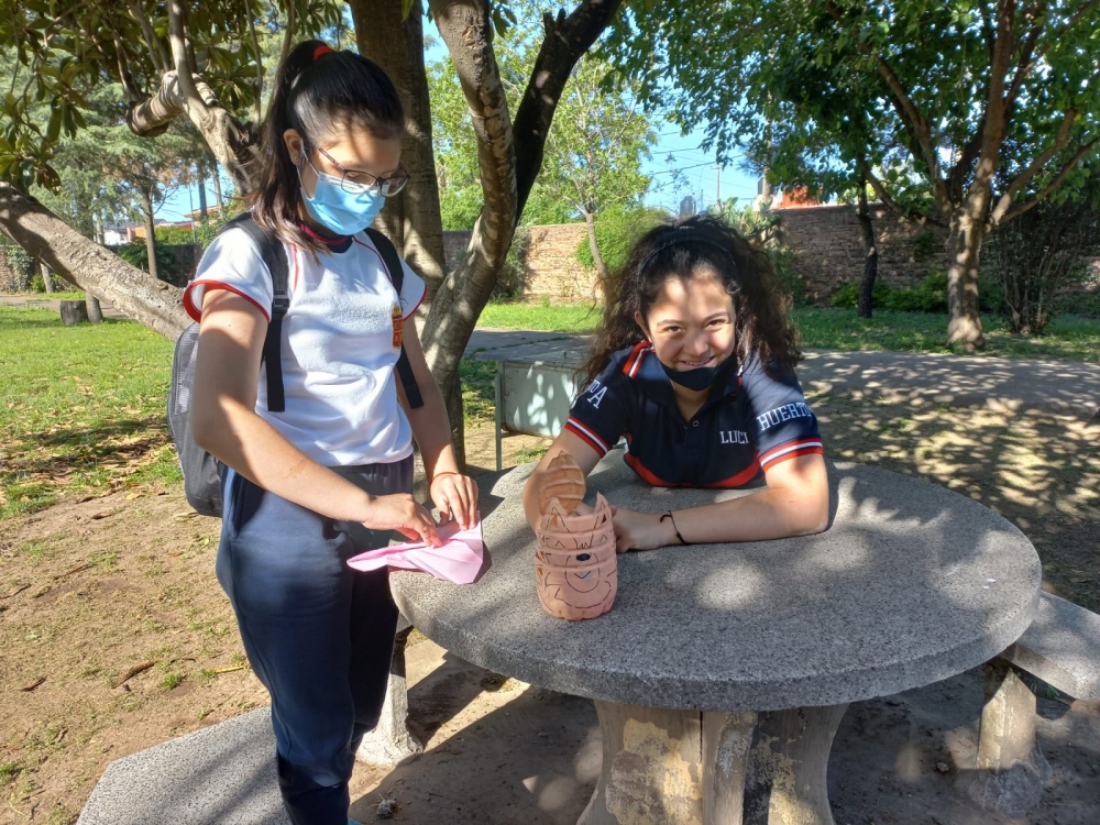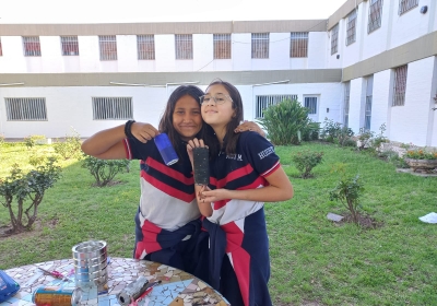 Vanessa y María Inés, y acompañados por la Hna. Silvia y la Prof. Vanesa.