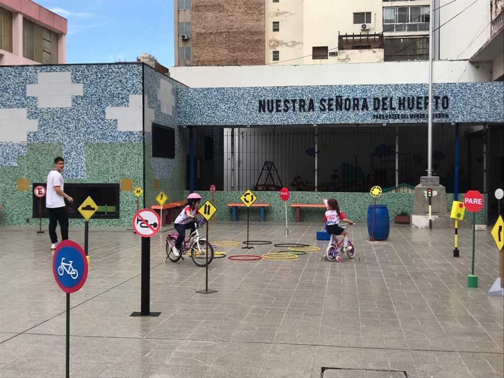 En el jardín gracias a la colaboración de las familias que prepararon señales de tránsito, pudimos realizar nuestro propio recorrido en el patio del colegio.