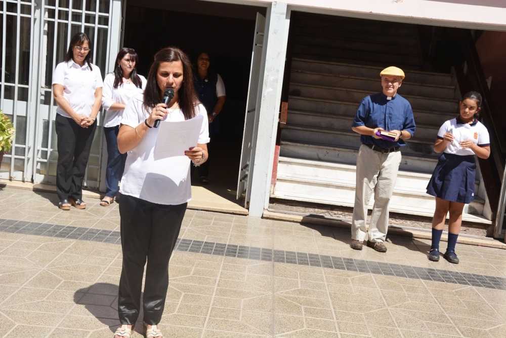 En este momento contamos con la presencia de la Madre Superiora y Representante Legal Beatriz Gómez, las Hermanas María del Huerto y Elvira, el Padre Darío Desperes, los Equipos Directivos de los tres Niveles, Docentes, familias y alumnos.