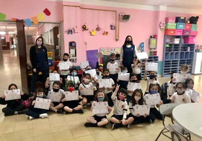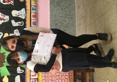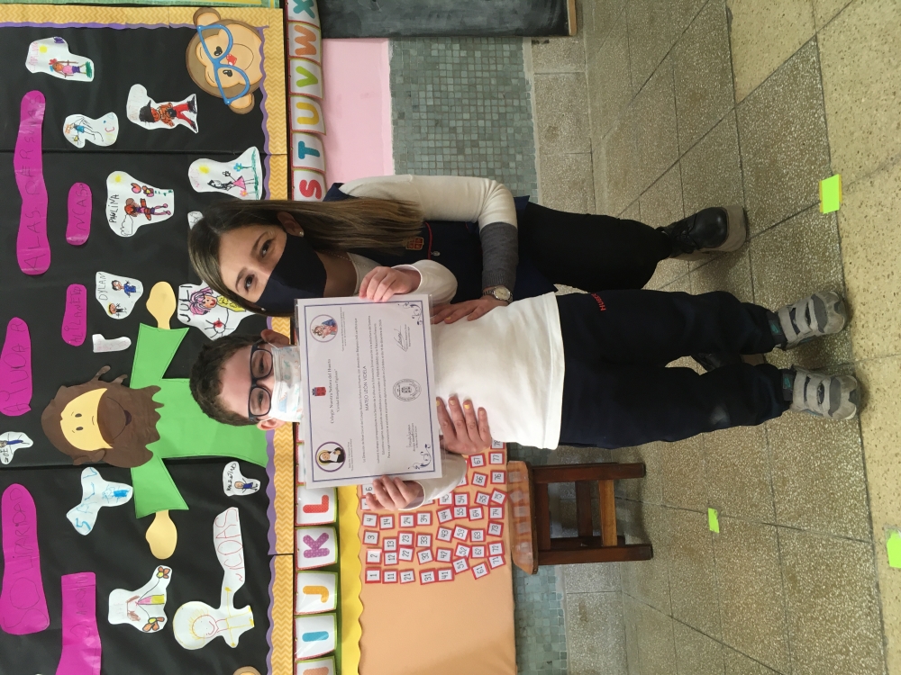 El lunes 4 de octubre, las seños de jardín, recibieron a los alumnos de Primer Grado para compartir con ellos la entrega de los diplomas de culminación de Sala de 5 -2020-.