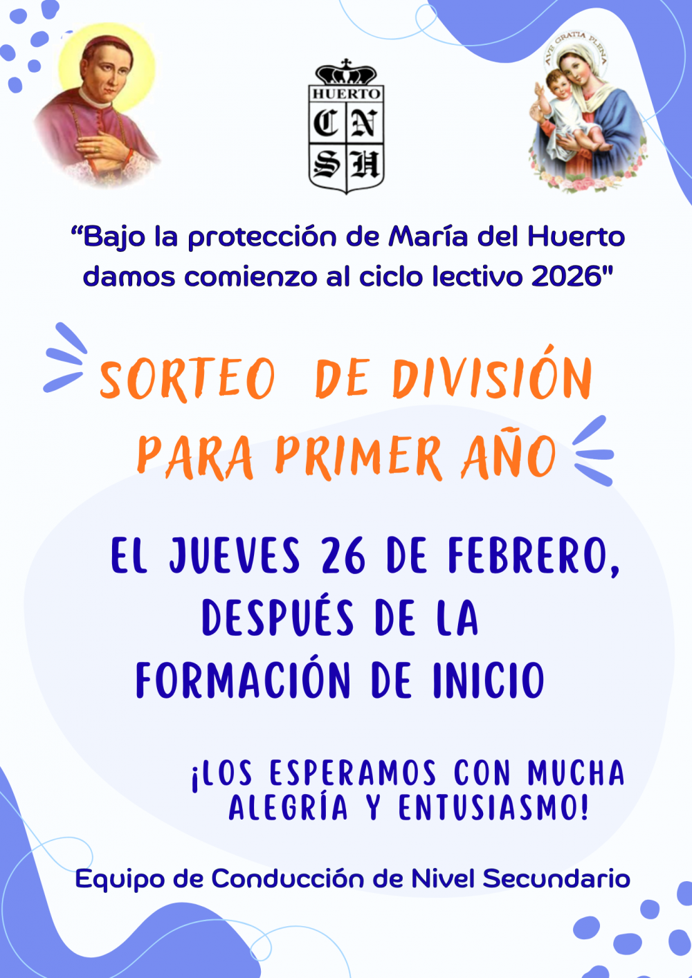 Sorteo de división para 1° año - Secundario